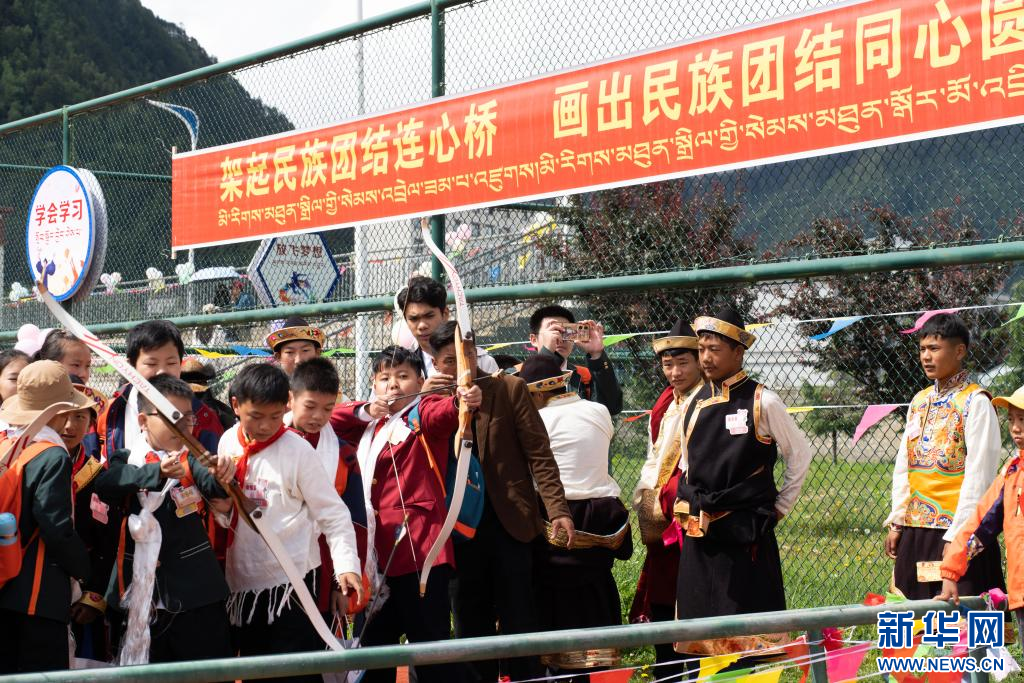 米林市一中學學生與珠港澳青年互動。新華網(wǎng)發(fā) 蘇思源 攝