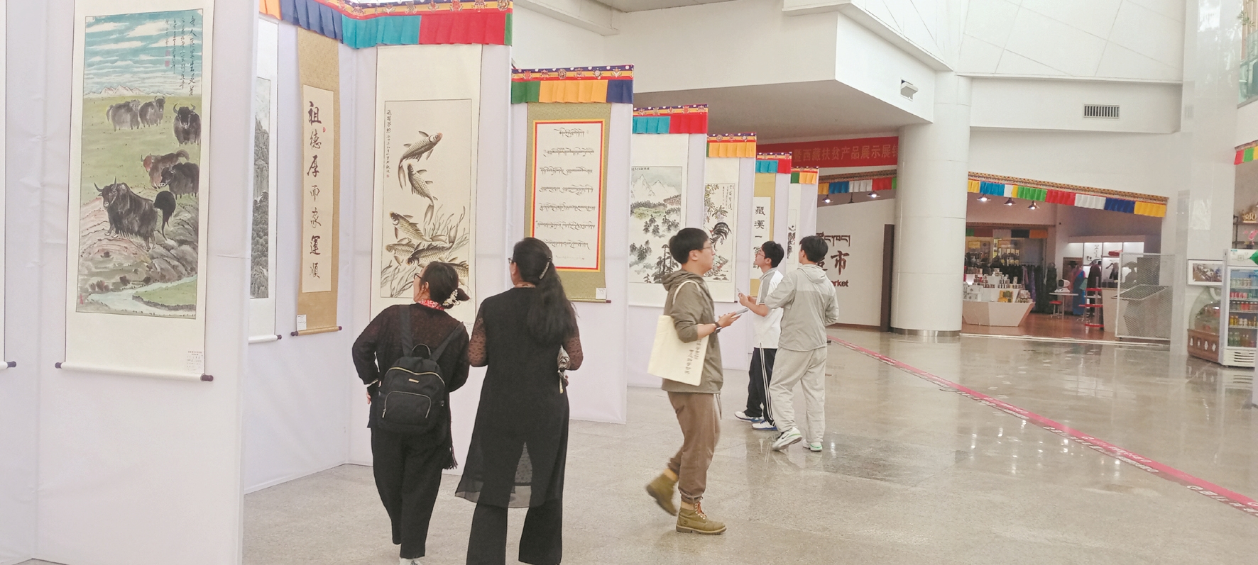 圖為市民在觀看書畫展。 拉薩融媒記者 齊永昌攝