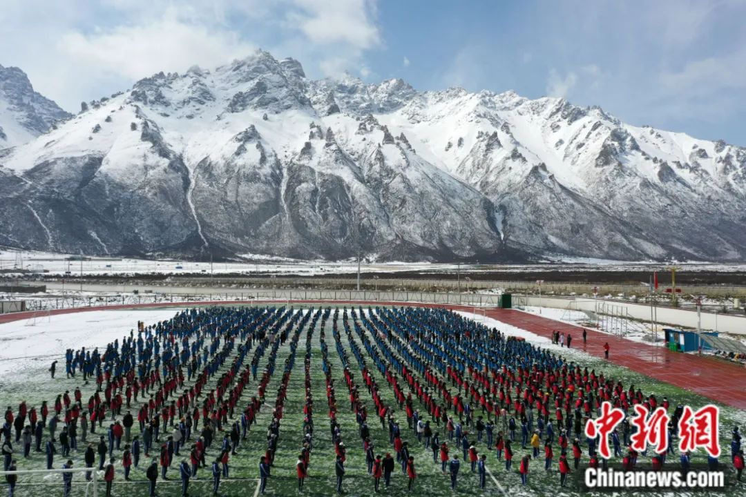 西藏嘉黎縣中學(xué)學(xué)生在操場(chǎng)做操。貢嘎來(lái)松 攝