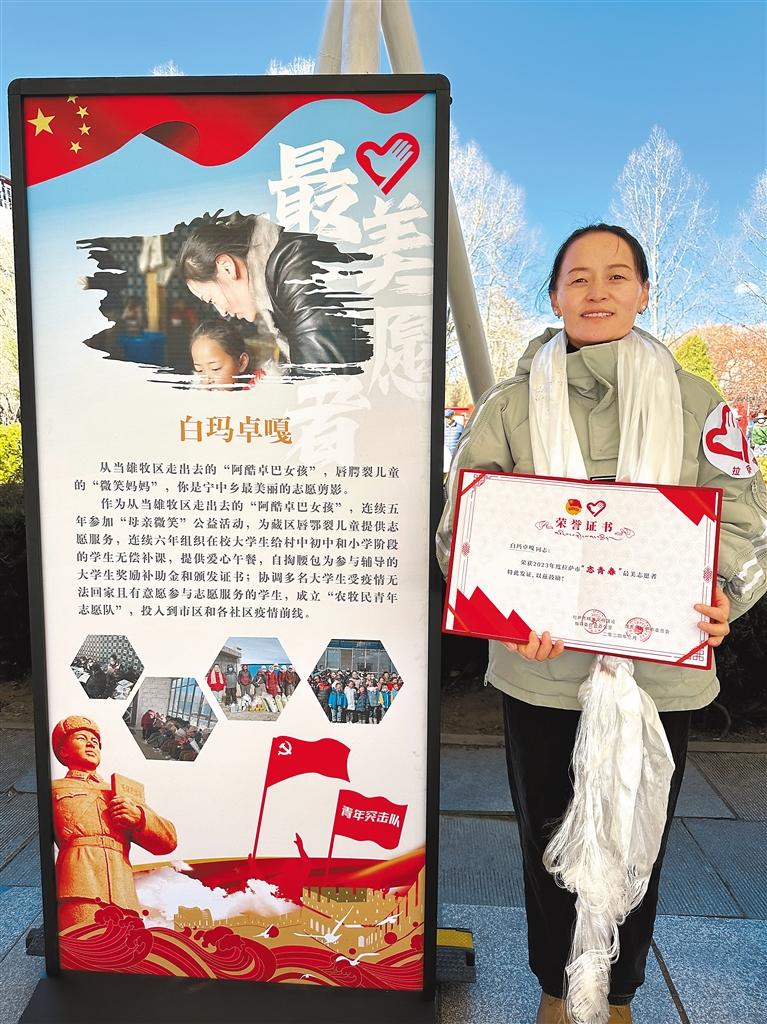 這是榮獲拉薩市2023年度“最美志愿者”稱號的白瑪卓嘎。