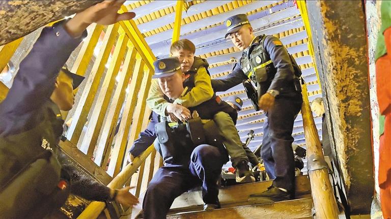 消防指戰(zhàn)員們用擔(dān)架幫助殘障游客“圓夢”。