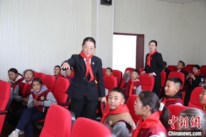 圖為瓊結(jié)縣人民法院院長解松娟正在為學生們講解庭審過程。倫珠澤仁攝