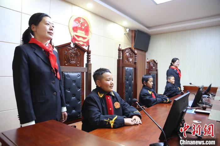 圖為學生們在法官的帶領(lǐng)下沉浸式體驗模擬法庭。倫珠澤仁攝