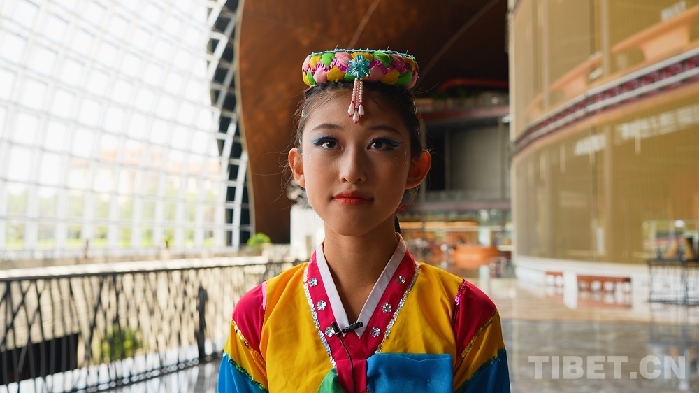 隨后,同學(xué)們相繼帶來(lái)多民族舞蹈展演,不僅有苗族舞蹈《岜沙獵人》、土家族舞蹈《阿達(dá)畢的心聲》,還有朝鮮族舞蹈《嬉舞泉韻》、漢族舞蹈《青傘映紅妝》、蒙古族舞蹈《美麗的草原我的家》、維吾爾族舞蹈《錦繡中華》和藏族舞蹈《歡樂(lè)牧民生活》等民族舞蹈串燒,演出熱烈歡快、獨(dú)具特色,讓觀眾們感受到我國(guó)各民族舞蹈的藝術(shù)特色和人們對(duì)美好生活的熱愛(ài)與期待。來(lái)自北京市航天圖強(qiáng)小學(xué)的蔡雨桐對(duì)記者表示,此次能夠跟西藏來(lái)的同學(xué)們一起朝夕相處、排練節(jié)目,讓她深刻感受到漢藏文化的交流交融?!拔覀兿嗵幍檬秩谇ⅲ谌粘I钪形乙舱J(rèn)識(shí)了很多藏族的小朋友,回去之后我們還會(huì)繼續(xù)通過(guò)書(shū)信聯(lián)系保持溝通,她們的淳樸、善良給我留下了深刻的印象。”