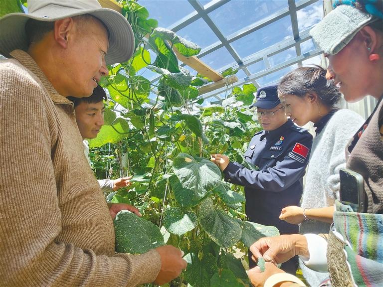 次仁加措與所里民警不僅定期給曲宗村的老人送去蔬菜,還會(huì)邀請(qǐng)群眾到派出所的溫室大棚參觀學(xué)習(xí),毫無保留地傳授溫室大棚種植技術(shù),播種綠的希望,讓更多人能品嘗到新鮮的蔬菜水果。