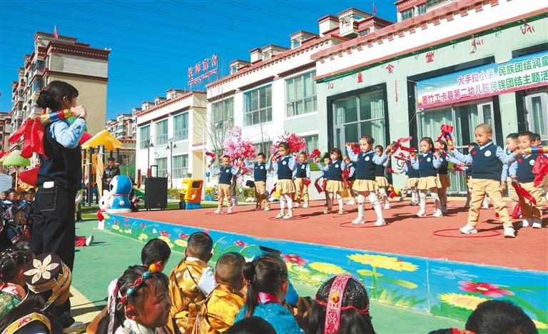 近日,墨竹工卡縣第二幼兒園舉行以“大手拉小手,民族團結潤童心”為主題的民族團結活動。此次活動使孩子們從小體會到各民族一家親,在成長初期筑牢民族團結的基石,未來成為促進民族團結、推動社會和諧發(fā)展的堅實力量。