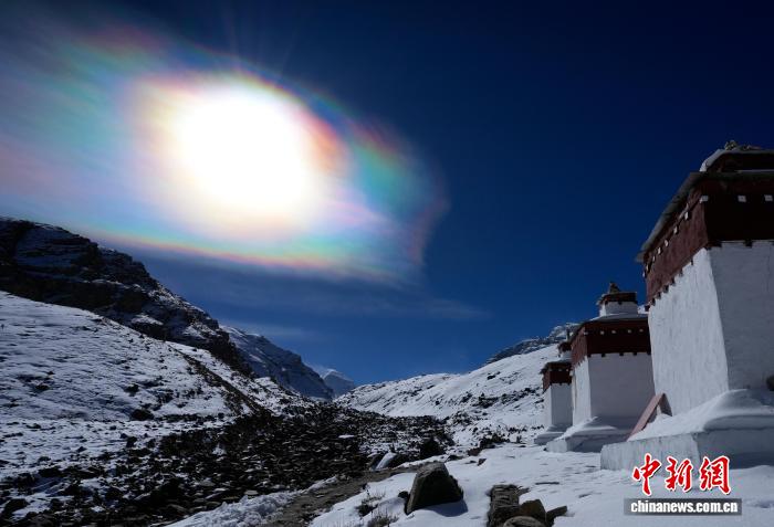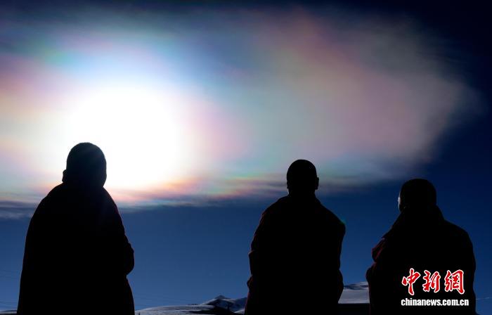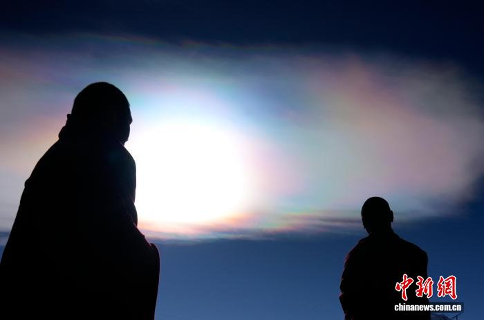 11月5日上午,西藏日喀則市崗巴縣天空中出現(xiàn)“七彩祥云”景觀。據(jù)了解,“七彩祥云”又叫“七彩云”“虹彩云”,是指太陽光線與云彩中的冰晶結(jié)構(gòu)產(chǎn)生的自然現(xiàn)象。中新社記者 李林 攝