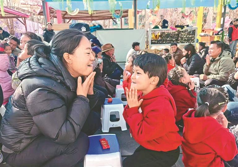 圖為小朋友和家長在活動中愉快互動。本報記者 格桑倫珠 攝