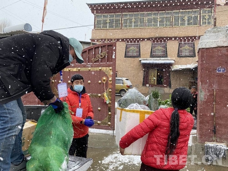 圖為理塘團(tuán)縣委“青年突擊隊(duì)”風(fēng)雪中免費(fèi)跑腿為抗疫“宅家”群眾送物資上門
