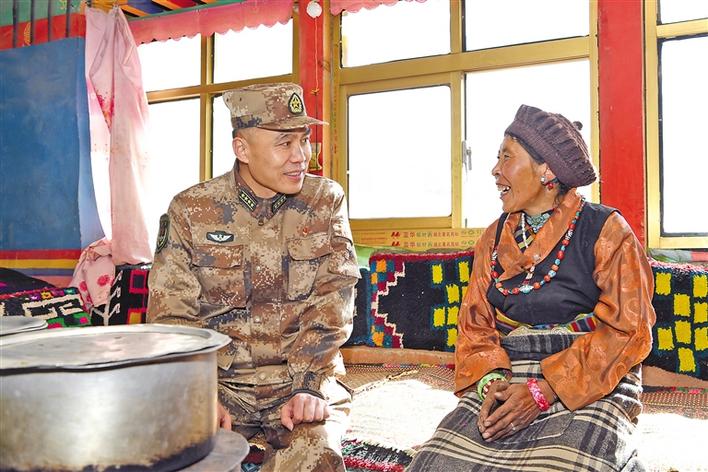 圖為日喀則軍分區(qū)官兵走訪貧困群眾,詳細了解情況,宣傳扶貧政策,開展結(jié)對幫扶。記者 汪純 攝