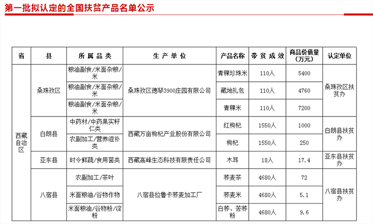 圖為第一批《全國(guó)扶貧產(chǎn)品名單》中的西藏自治區(qū)部分來源:中國(guó)社會(huì)扶貧網(wǎng)
