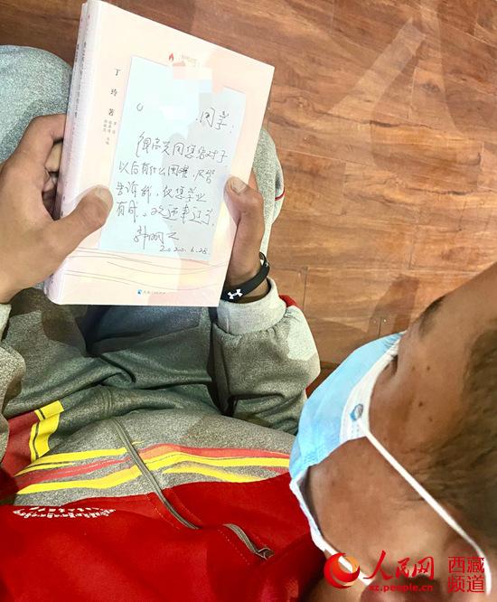 郭明義一對(duì)一的幫扶學(xué)生在看郭明義給自己寫(xiě)的寄語(yǔ)。廉夢(mèng)歌 攝