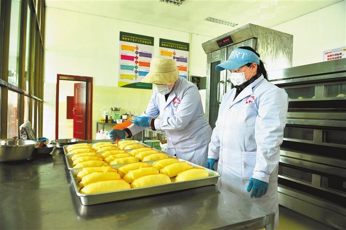 圖為普蘭縣西德村村民在西德青稞原地食品有限公司內(nèi)生產(chǎn)面包。 記者 溫凱 洛桑旦增 陳林 趙書彬 韓劉 攝