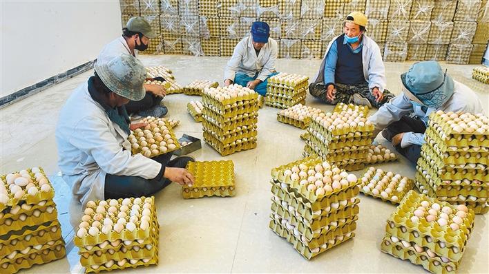 圖為當(dāng)?shù)厝罕娫谠擆B(yǎng)雞場(chǎng)包裝藏雞蛋。記者 黃志武 攝