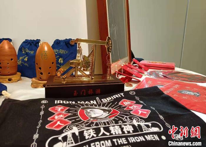 圖為“鐵人”王進(jìn)喜故里甘肅玉門(mén)以“鐵人精神”制作的文創(chuàng)產(chǎn)品展示。 張婧 攝