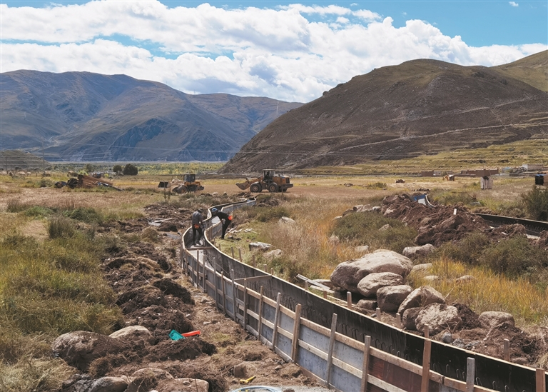 圖為當?shù)剞r牧民正在參與修建灌溉水渠。拉薩融媒記者 凃 瓊攝