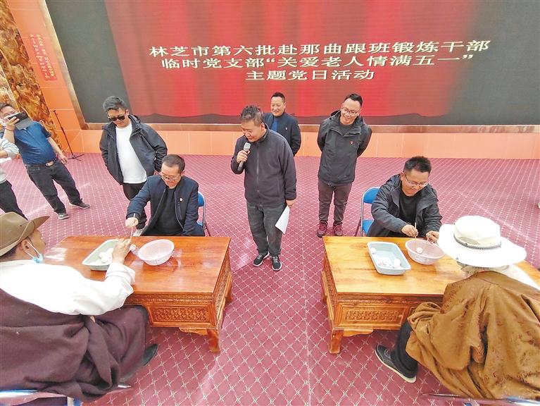 近日,林芝赴那曲跟班鍛煉小組臨時黨支部組織黨員干部前往色尼區(qū)特困人員集中供養(yǎng)中心開展關(guān)愛老人主題黨日活動?;顒又校h員干部為老人們發(fā)放慰問品、表演文藝節(jié)目,同老人們拉家常,幫老人們打掃衛(wèi)生。此次活動既是一次志愿活動,也是一次黨性鍛煉,充分展現(xiàn)了黨員干部踐行為民服務(wù)、奮發(fā)有為的時代風(fēng)采,增進了干群關(guān)系。