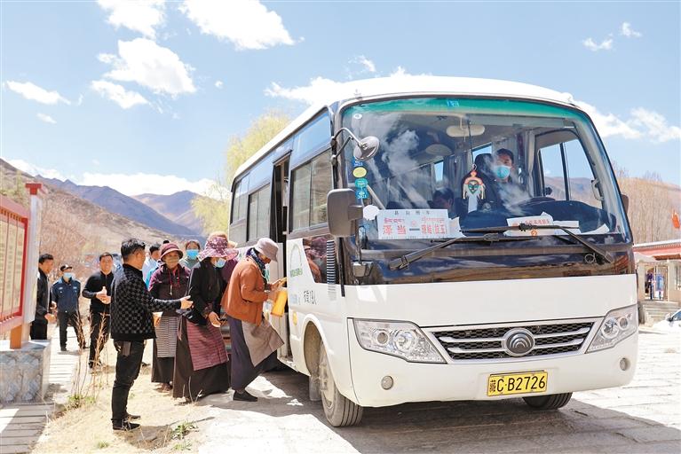 圖為山南市瓊結縣定時發(fā)車的農(nóng)村客運班車,讓群眾出行更方便更安全。