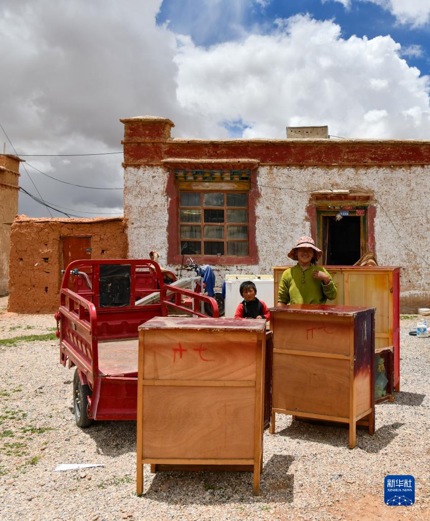 雙湖縣多瑪鄉(xiāng)果根擦曲村村民在搬運家具,準(zhǔn)備搬遷(7月12日攝)。新華社記者 晉美多吉 攝