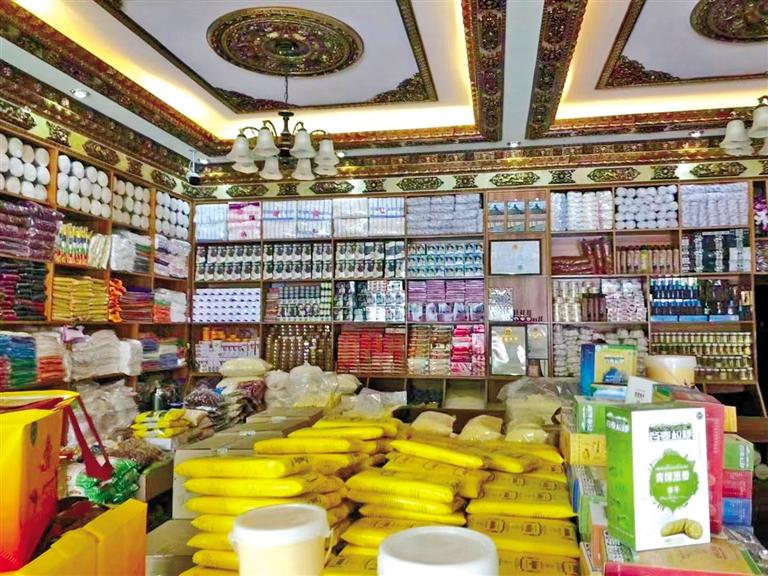 圖為江孜縣城商戶出售的青稞食品。 (圖文均由郵儲銀行西藏分行提供)