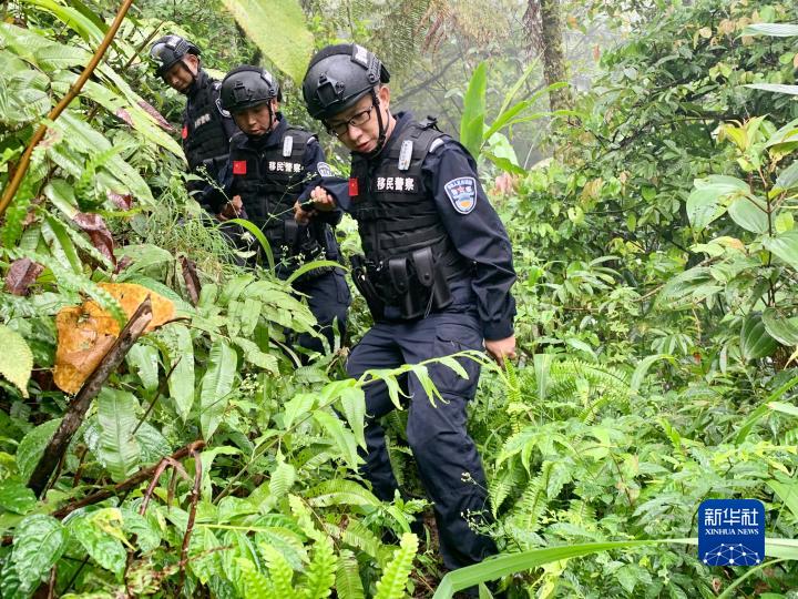 林芝邊境管理支隊墨脫大隊背崩邊境派出所民警巡邏踏查中。