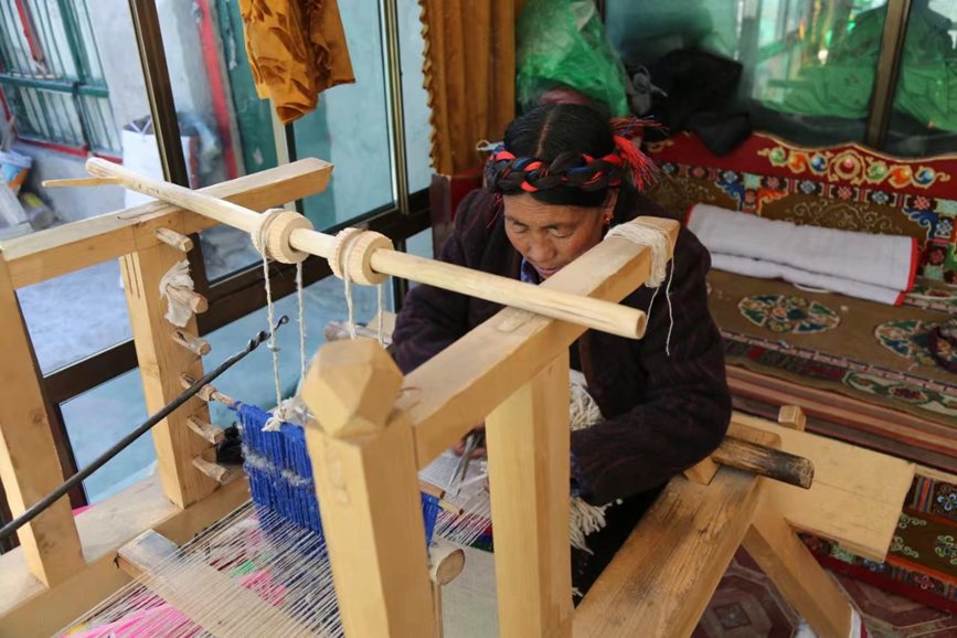 編織也是當(dāng)?shù)禺a(chǎn)業(yè)之一。圖片由浪卡子縣網(wǎng)信辦提供