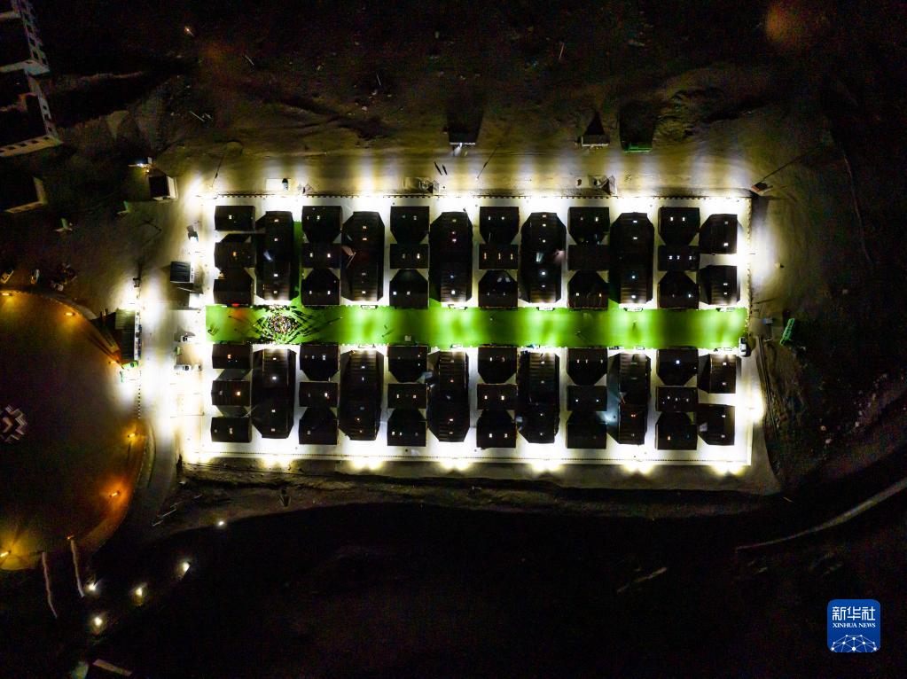 這是夜晚的珠峰游客大本營(yíng)帳篷旅館(5月16日攝,無(wú)人機(jī)照片)。新華社記者 孫非 攝