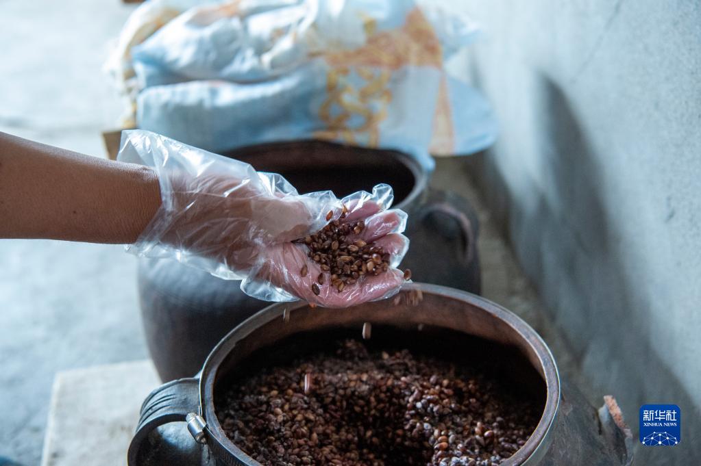 發(fā)酵后的黑青稞。新華社發(fā)(旦增努布 攝)