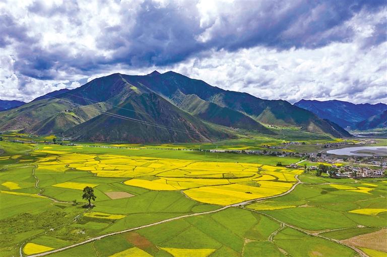 7月的墨竹,3萬多畝油菜花競相綻放,匯成金色海洋,蜂蝶飛舞,花香四溢。