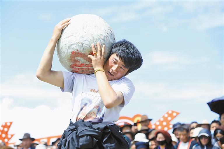 抱石頭比賽。記者 格桑倫珠 攝