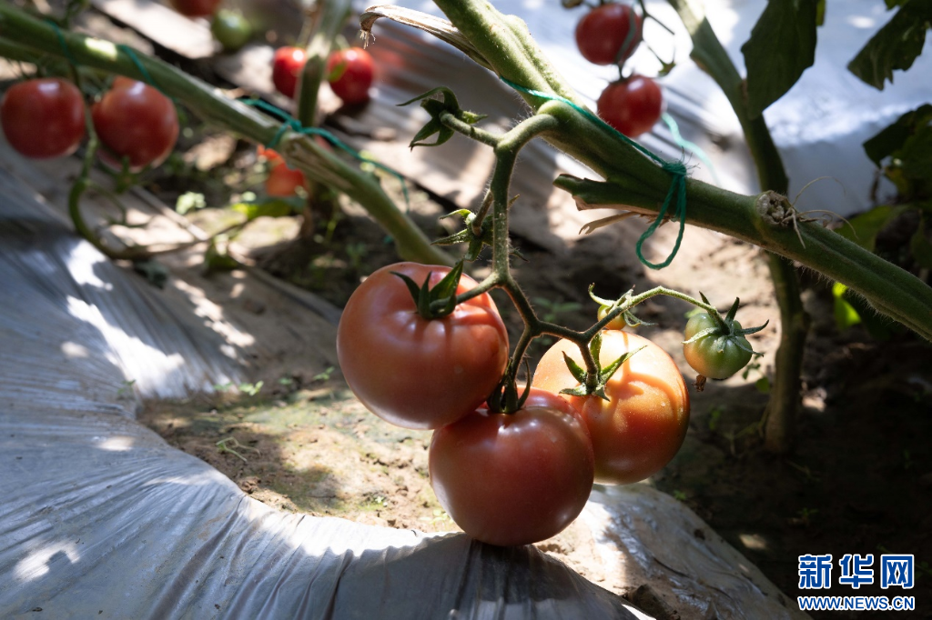 圖為曲水縣才納園區(qū)水果采摘區(qū)內成熟的番茄(8月20日攝)。 新華網(wǎng)發(fā) 李騰 攝