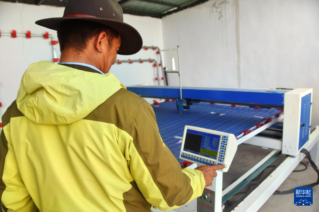 一位村民在操作羊毛被加工機器(8月24日攝)。新華社記者 劉文博攝