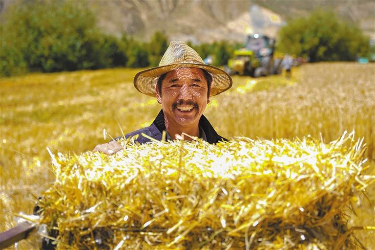 正值秋收時節(jié),山南市扎囊縣桑普村麥田里一片繁忙的景象,轟隆的機收聲猶如一串歡快的音符,奏響了豐收的樂章。“現(xiàn)在有了機械非常方便,你看,一眨眼的功夫這塊地就收完了。”村民白珍指著眼前的麥田說道。近年來,鄉(xiāng)親們靠著黨的支農(nóng)惠農(nóng)政策,不斷提升農(nóng)業(yè)機械化水平,收割效率極大提升。