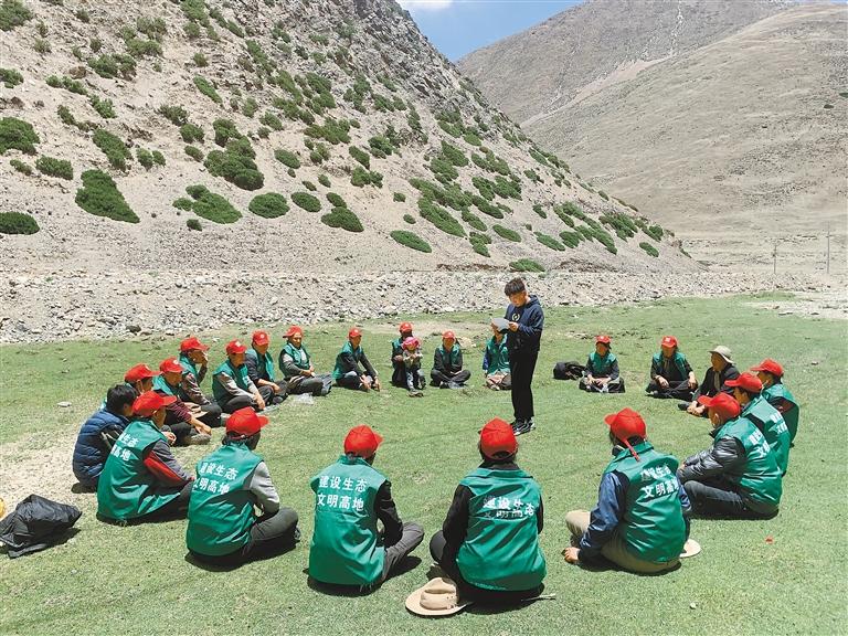 圖為美巴切勤鄉(xiāng)干部向護林員宣講生態(tài)環(huán)境保護政策。 記者 楊小娟 攝