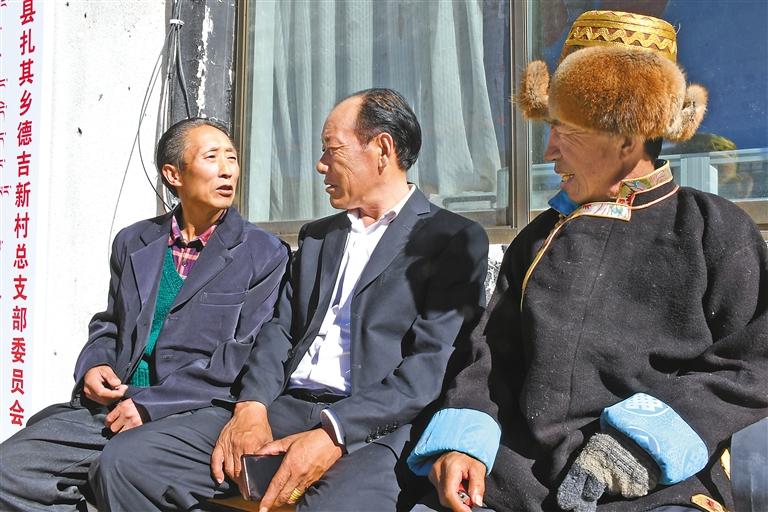 德吉新村村民丹增一身黑氆氌藏裝、頭戴“次仁金廓(金絲帽)”,操著一口地道的扎囊方言,要不是村里人的介紹,誰(shuí)也看不出他其實(shí)并非“藏家大叔”。