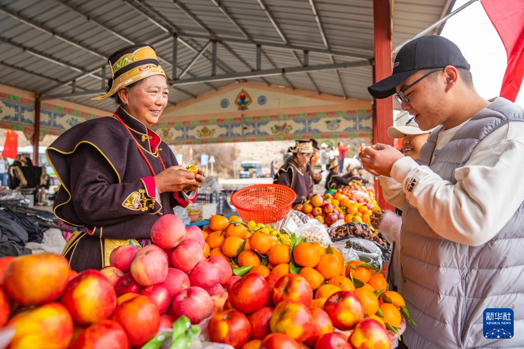 “2000年的時候,只有5、6戶在賣水果。后來我?guī)Т蠹胰ジ浇慕_縣、派鎮(zhèn)等參觀學習,看別人怎么售賣、怎么搞衛(wèi)生?!?8歲的邊巴是羌渡崗村前村委會主任,他回憶,“以前攤位沒有通水,從村里接出的管道一到冬天就裂。隨著硬件改善和大家售賣經(jīng)驗日漸豐富,村民們的變化越來越大?!?/p>