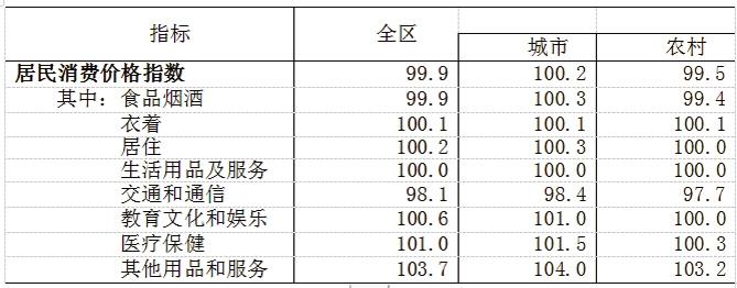 全年全區(qū)居民消費(fèi)價格比上年下降0.1%,工業(yè)生產(chǎn)者出廠價格上漲1.1%。