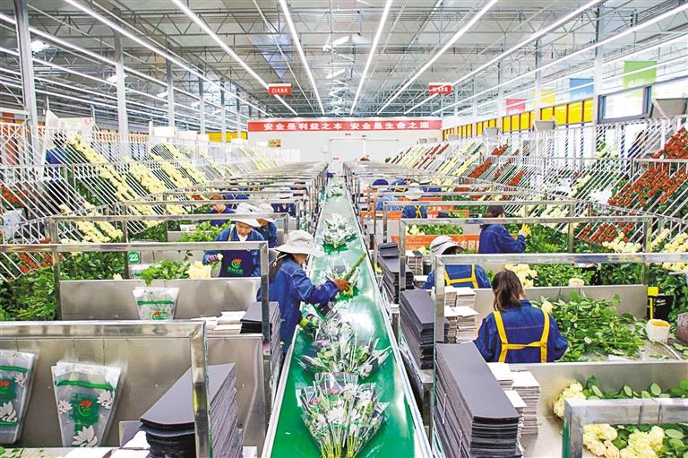 圖為工人在甘肅臨夏百益億農(nóng)國際鮮花港玫瑰工廠包裝玫瑰(2023年8月15日攝)。新華社發(fā)