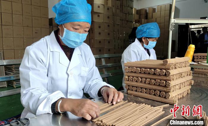 “我們農閑時就會來這里制作藏香?!睅孜宦耦^工作的婦女不善言談,但她們數(shù)線香、捆藏香流程十分嫻熟,她們足不出村實現(xiàn)就業(yè)增收。