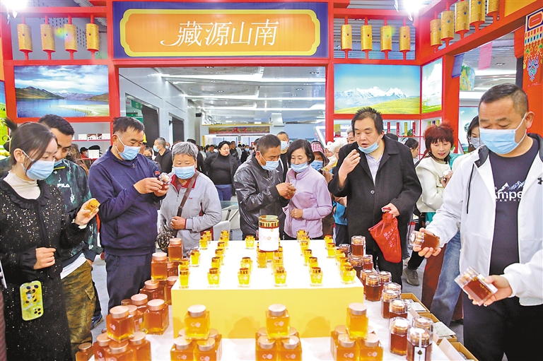 圖為2023年4月,安徽省援藏工作隊組織山南市17家企業(yè)參加淮北食品工業(yè)博覽會。(圖片由安徽省援藏工作隊提供)