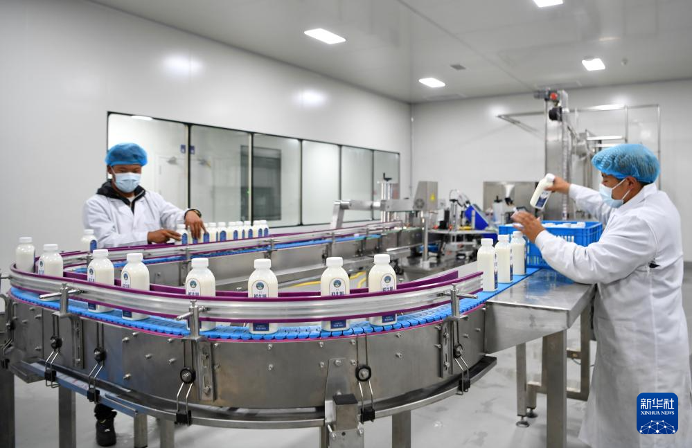 嘎確生態(tài)畜牧業(yè)發(fā)展有限責任公司的工人在牛奶生產(chǎn)流水線上工作(8月24日攝)。新華社記者 張汝鋒 攝