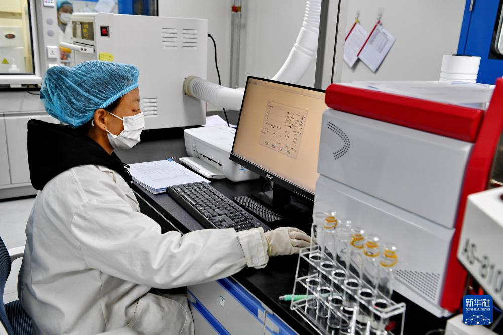 嘎確生態(tài)畜牧業(yè)發(fā)展有限責任公司檢驗人員在對牛奶中的污染物進行檢測(8月24日攝)。新華社記者 張汝鋒 攝