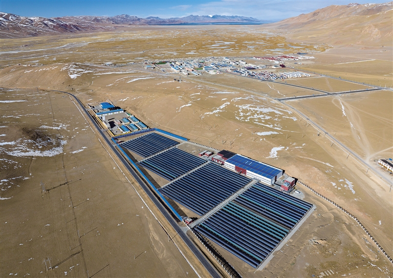 鳥瞰申扎縣城集中供暖項目太陽能集熱場?!⌒氯A社記者 旦增尼瑪曲珠 攝