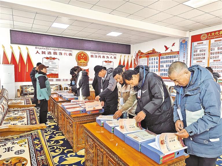 圖為考察人員在錯那學(xué)習(xí)當(dāng)?shù)剜l(xiāng)村振興、基層治理、民族團(tuán)結(jié)和壯大村集體經(jīng)濟(jì)等方面的工作經(jīng)驗。記者 丹增平措 攝