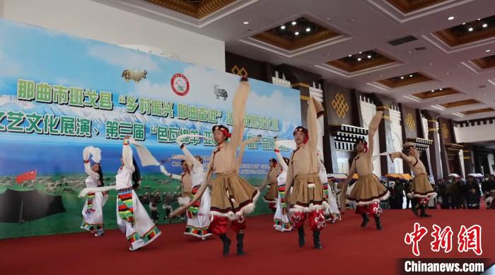圖為班戈縣“鄉(xiāng)村振興 那曲奮進”活動成果轉化暨文藝文化展演、第三屆畜產品展銷會開幕式歌舞演出。洛桑斯卓 攝