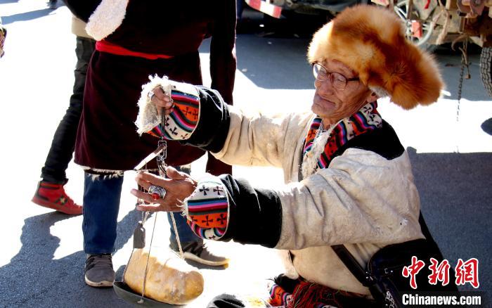 圖為申扎縣畜產(chǎn)品展銷會現(xiàn)場上,牧民正出售酥油。(資料圖)那曲市申扎縣委宣傳部供圖