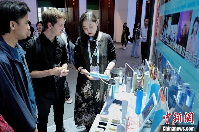 5月8日,觀眾在北京科博會的西藏拉薩展館了解一款便攜式吸氧設(shè)備。當(dāng)日,第二十七屆北京科博會在國家會議中心開幕。記者 張祥毅 攝