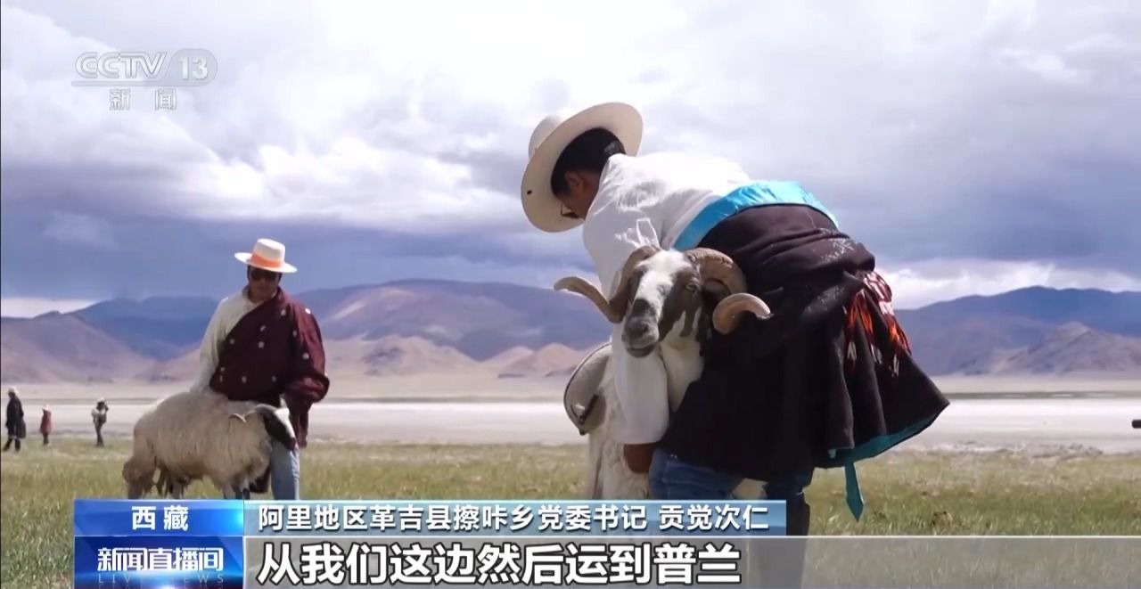 阿里地區(qū)革吉縣擦咔鄉(xiāng)黨委書記 貢覺(jué)次仁:歷史時(shí)期,我們這邊采鹽的湖稱作章倉(cāng)三湖。鹽以綿羊作為交通工具,每只綿羊大概背20斤左右,從我們這邊運(yùn)到普蘭、日喀則,到印度、尼泊爾等地,以物易物的方式進(jìn)行交易。
