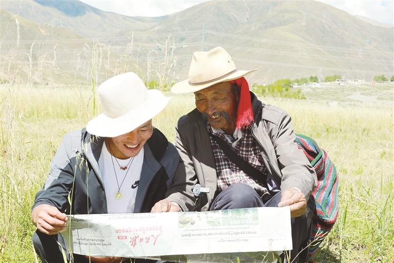 貢桑次旺站在田埂上,身旁是沉甸甸、顆粒飽滿的青稞,面前圍坐的村民們放下農(nóng)具,眼中滿是對(duì)新生活的期待。他掏出精心準(zhǔn)備的資料,結(jié)合西藏自治區(qū)成立60年以來的發(fā)展變遷,用質(zhì)樸的語言講解大會(huì)精神核心要義,“習(xí)近平總書記親臨西藏,這是黨中央對(duì)咱們西藏各族人民的親切關(guān)懷!想想咱們卓村的變化,不正是西藏發(fā)展的縮影嗎?”