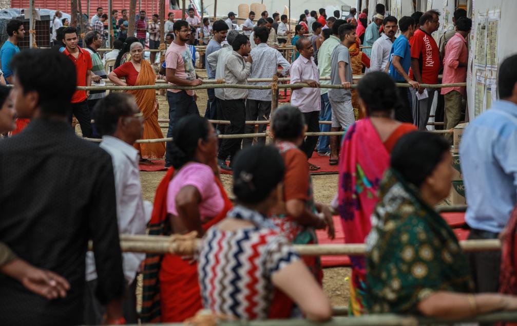 2019年4月29日,在印度孟買,人們排隊(duì)投票。新華社發(fā)